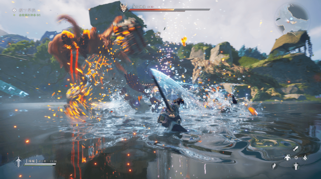 游戏最惊艳的亮点,是将王者英雄技能与开放世界战斗深度融合。通过“淬炼”系统与英雄建立羁绊,就能掌握李白的剑气、韩信的位移,甚至实现双形态无缝切换——用伽罗的蓄力箭远程破盾,瞬间切换近战形态贴脸输出,技能衔接流畅度拉满。更加入Z轴战斗与环境互动机制,BOSS战需四人分工破盾、打弱点、接力跳台,把MOBA的团战基因完美融入副本挑战,暴雨天雨水会顺着建筑纹理流淌,野怪拥有情绪系统,细节拉满让世界充满生机。