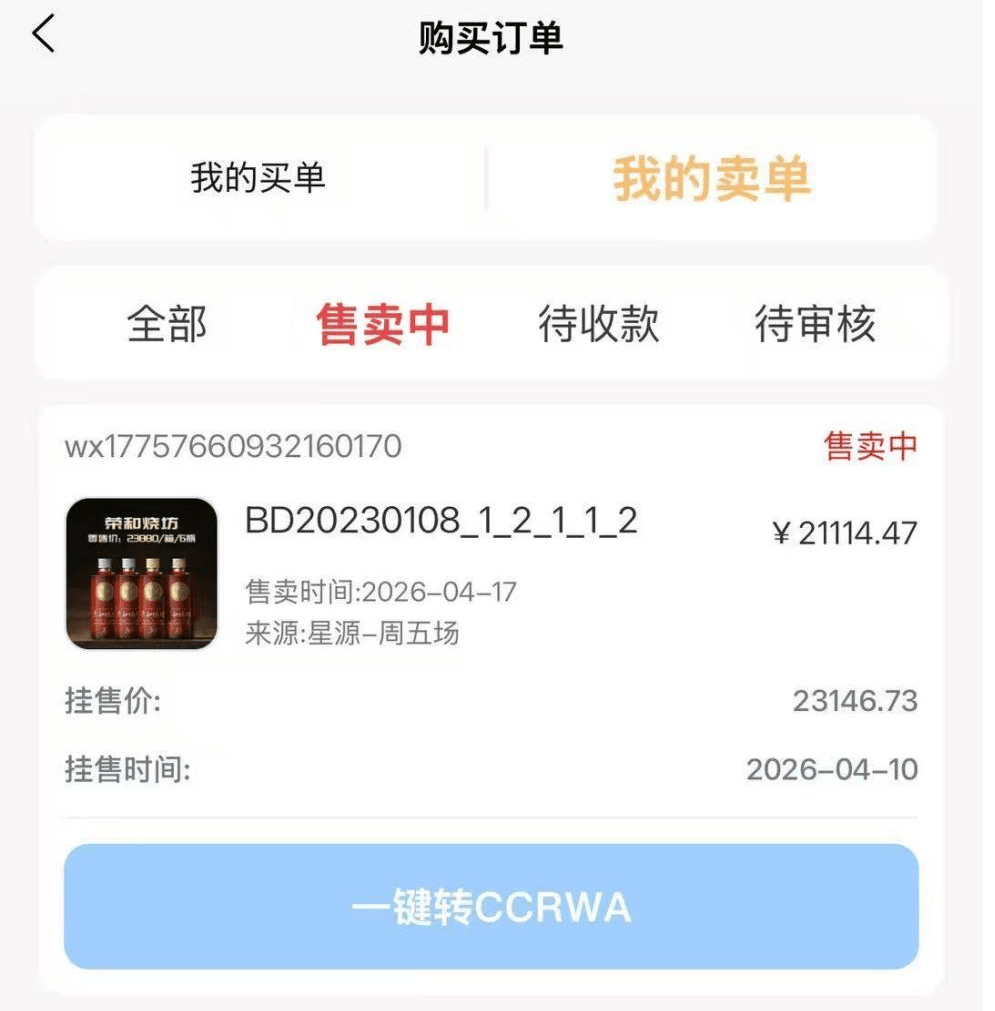 记者获取的挂售截图显示,2026年4月10日,有投资者以21114.47元成本抢单,挂售价23146.73元,7天价差达2032元,对应利率高达9.62%。